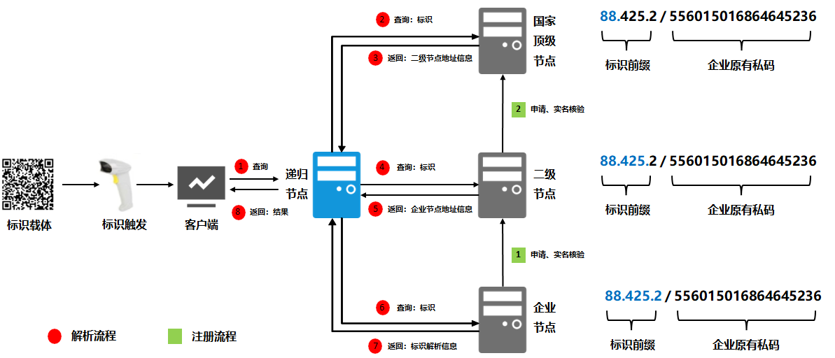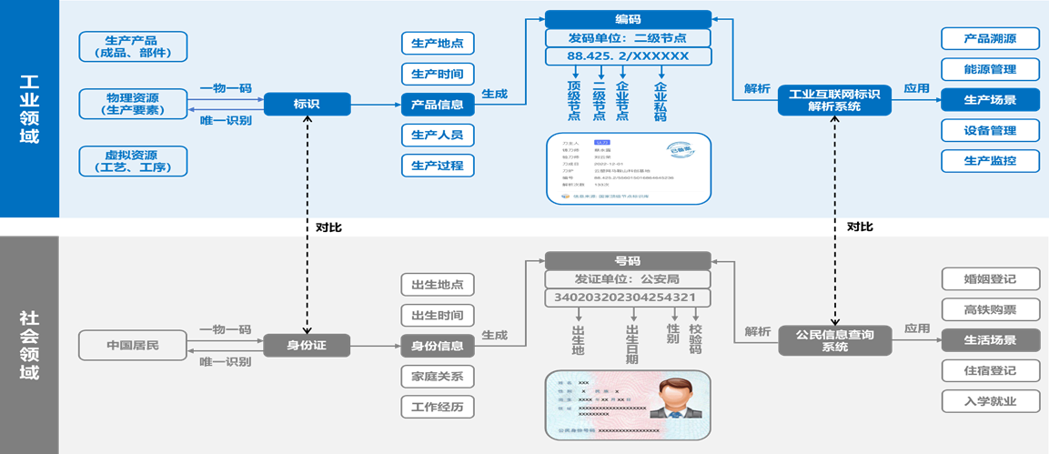 标识解析通过为工业领域的人、机、物、数据等全要素资源赋予唯一“身份证”,标识信息通过在标识解析体系内进行标识注册与解析,从而在不同系统、不同设备、不同企业、不同产业之间实现了信息的全面互联。